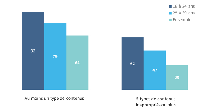 Taux d’exposition à des contenus inappropriés ou inadaptés sur les réseaux sociaux et plateformes de partage de vidéo chez les jeunes adultes