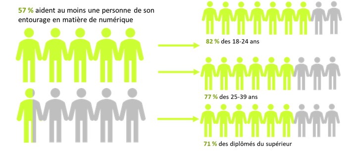 Catégories de la population apportant plus souvent une aide au numérique