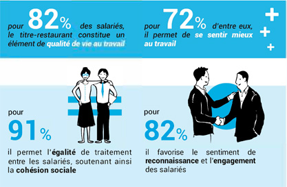 Le titre-restaurant, avantage social et économique du quotidien perçu comme incontournable par les salariés, est un levier de qualité de vie au travail : 82% d’entre eux affirment qu’il constitue un élément de la qualité de vie au travail, 72% qu’il permet de se sentir mieux au travail...